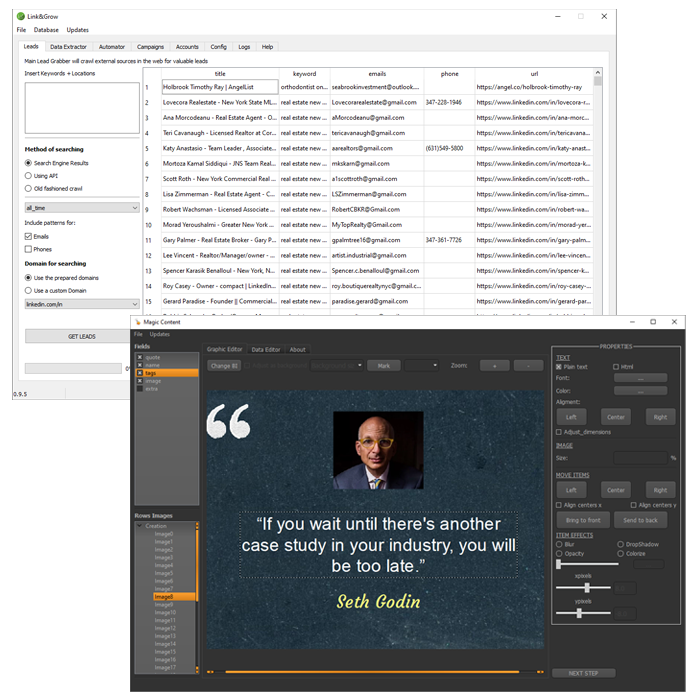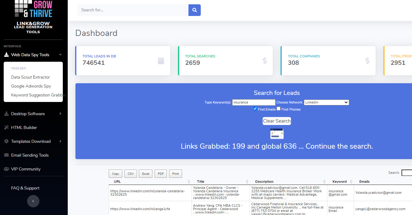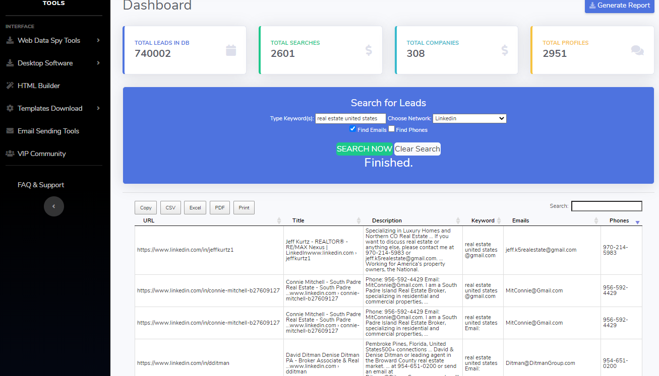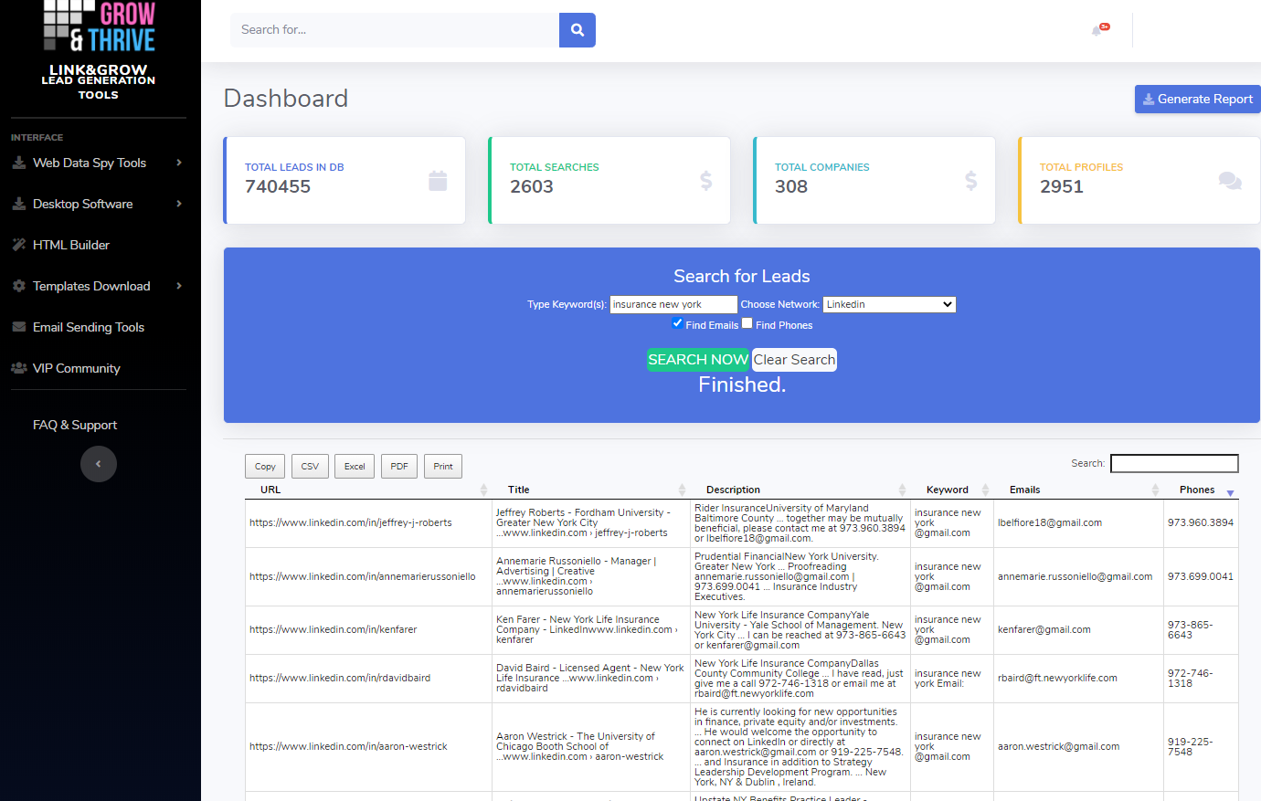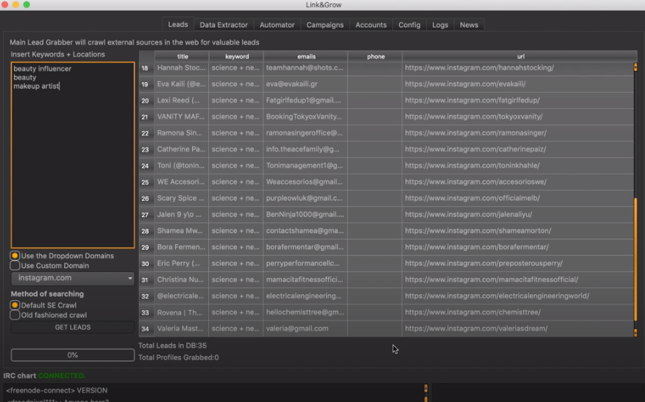 Lead Generation software, it scrapes any network for profiles with emails and/or phones.
