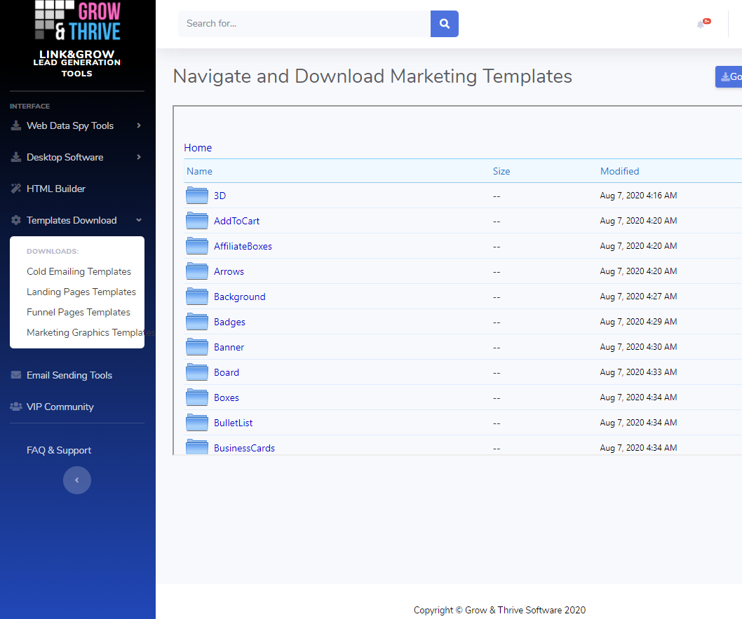 Find different tools for multiple needs: Google Ads Spy, HTML Builder with templates, Marketing Graphics downloads, and many more functions to come monthly.